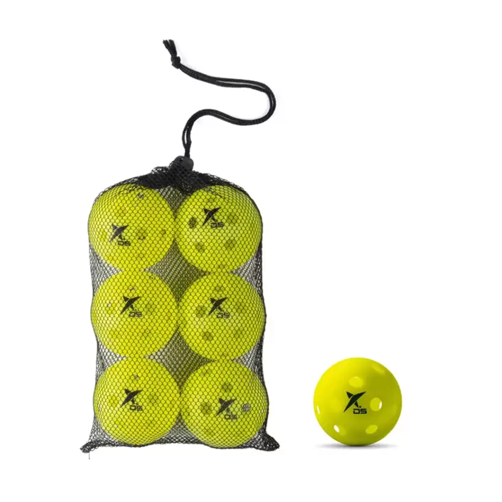 Na drop shot temos 2 opções de bolas de pickleball, OUTDOOR ou INDOOR, para jogo externo e interno, que são vendidas em embalagens com 6 unidades